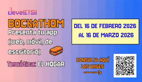 La asociación DevelETSII, con sede en la Escuela, ha anunciado la celebración de Bockathom 2026, un certamen tecnológico dirigido a quienes desarrollan y son entusiastas de la innovación. El concurso propone diseñar y desarrollar soluciones técnicas —web, móviles, de escritorio o IoT— que aporten valor al concepto de “El Hogar”, abordando ámbitos como la domótica, la eficiencia energética, la gestión financiera o la convivencia. La participación es gratuita, individual o en equipos de hasta tres personas. El jurado valorará creatividad, diseño y utilidad. El proyecto ganador recibirá un premio gastronómico y un diploma acreditativo. ¡Participa!